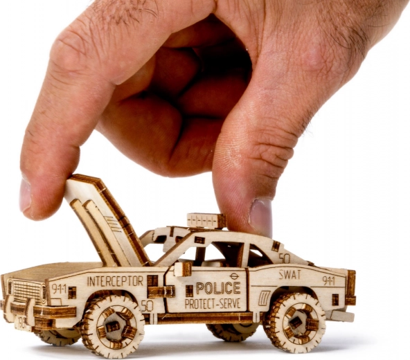 Sestavljanje je brez lepila in koščki natančno medsebojno zapadajo. Rezultat je trpežna miniaturna policijska avtomobilčka, ki se odlično poda na polico ali pisalno mizo. Znamka WOODEN CITY dodatno skrbi za ekologijo – izdelek je pakiran brez plastike.
