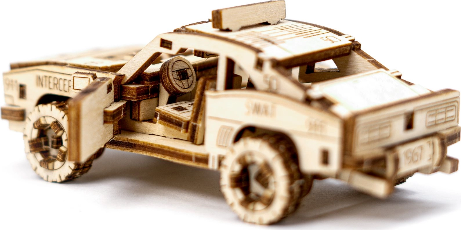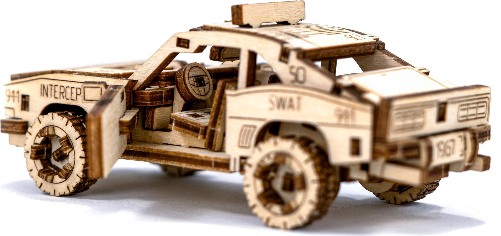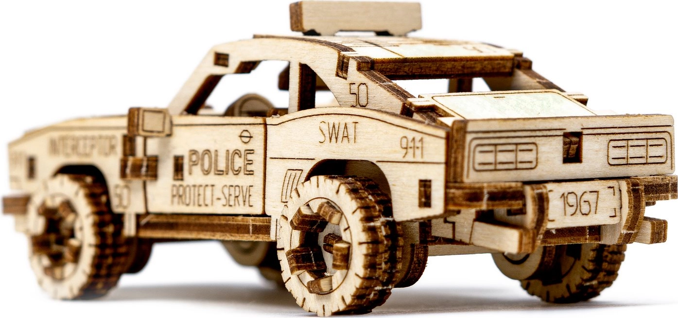 Sestavite si lastno policijsko vozilo iz kakovostne brezove vezane plošče in uživajte v mehanski 3D sestavljanki, ki razvija potrpežljivost, prostorsko predstavo in ustvarjalno razmišljanje. Model bo navdušil začetnike in napredne ter ne vzame veliko časa – kljub temu deluje realistično zaradi finega laserskega graviranja.