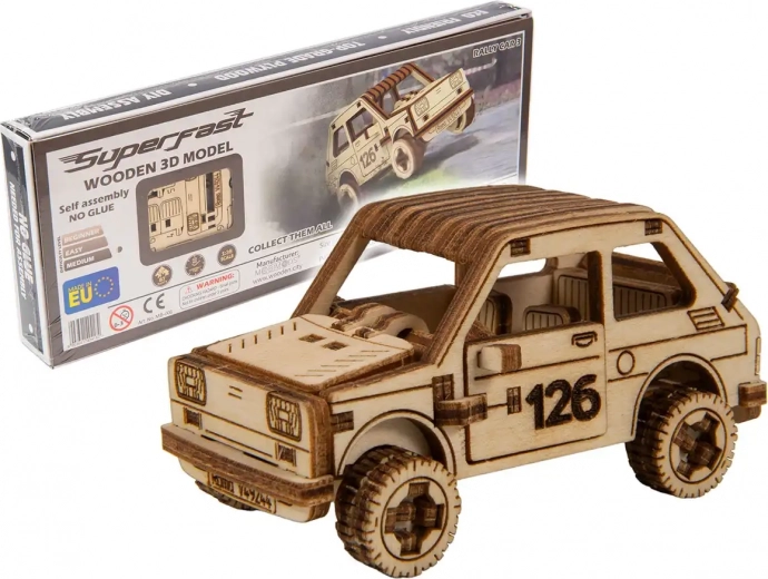 Natančno graviranje, gibljivi elementi in ikonična številka 126 dajejo modelu verodostojen videz reli vozila.