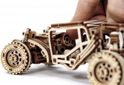 Ta realistični model buggyja v merilu 1:32 združuje premišljeno zasnovo in mehanske funkcije, ki navdušijo tako pri gradnji kot pri vožnji. Zahvaljujoč z laserjem izrezanim delom iz brestove vezane plošče se vse natančno prilega, rezultat pa je impresiven zbirateljski kos in poučna sestavljanka.