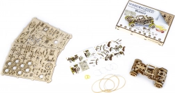 Z laserjem izrezani deli iz brestove vezane plošče se natančno prilegajo. Za gladko delovanje je dovolj po navodilih navoskati osi in zobnike.