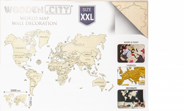 Ta izdelek je idealen za družine z otroki, saj lahko mladi popotniki slikajo z akrilnimi barvami na mesta, ki so jih obiskali. Lesena karta je izdelana iz ekoloških materialov in ponuja edinstven dizajn, ki bo očaral vsakega obiskovalca. Enostavna namestitev zagotavlja, da bo v trenutku okrasila vsako steno.