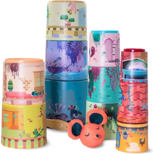 Miška in njen fantastični grad za podiranje - ta stolp iz skodelic je čista domišljija! Otroci lahko iz 11 lončkov v enem zamahu zgradijo ogromen stolp. Na lončkih so ilustracije različnih sob iz pravljične palače, v različnih barvah in z mnogimi liki.