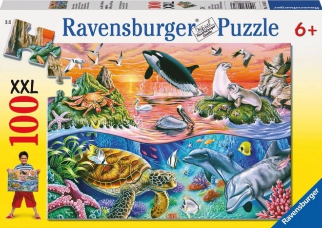 Odkrijte lepoto podvodnega sveta s puzzle Čudoviti ocean XXL priznanega proizvajalca Ravensburger. Ta puzzle s 100 kosi prinaša osupljiv vizualni učinek in postane popolna aktivnost za deževno popoldne ali ustvarjalen odmor.