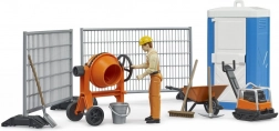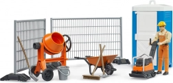 Ta tematski Bworld gradbeni set BRUDER na otroško gradbišče prinaša vse potrebno – od mešalne tehnike prek vibracijske plošče do mobilnega stranišča in gradbenih ograj. V paketu je tudi figurica gradbenika (10,7 cm), ki igri doda še več realističnosti.