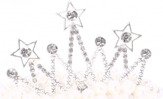 - Stajliš videz: perlaste kroglice in detajl krone za nežno slavnostni vtis.