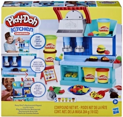 Naj vaši otroci odkrijejo svet kuhanja z igračo Play-Doh Kuhinjske Kreacije. Ta interaktivni komplet ponuja veliko možnosti: otroci lahko ustvarjajo pico, burgarje, testenine ali piščanca s pomočjo zabavnih žigov — dovolj je, da pritisnejo ročico in jedi so pripravljene.