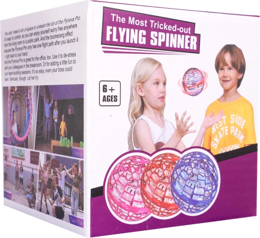 Ta lahka in vzdržljiva lebdeča žoga z zaščitno mrežico skriva propeler v notranjosti, zato je igra varna tudi za mlajše otroke. Reagira na smer in kot meta – lahko leti naravnost ali se vrača kot bumerang. Barvne LED diode poskrbijo za očarljiv prizor pri vsakem letu.