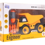 Ta plastični gradbeni kipar z izvijačem je idealen za otroke, ki imajo radi ustvarjanje in tehniko. Zahvaljujoč preprostemu sistemu vijakov si otrok vadi koordinacijo oko–roka, potrpežljivost in razume osnovna načela montaže in demontaže. Dvigajoča kesonska nadgradnja dodaja igri realističen pridih – nalagaj, prevaža in raztovarjaj.