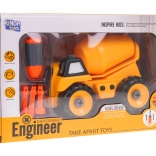 Zabaven sestavljiv gradbeni mešalnik za male graditelje od 3 let razvija fino motoriko, logično razmišljanje in kreativnost. Zahvaljujoč čvrsti plastiki je vozilo mogoče večkrat razstaviti in sestaviti, boben je dvižen, nagiben in vrtljiv. Priložen je izvijač s 3 zamenljivimi nastavki.
