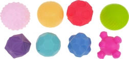 Vsaka žogica in kocka ima edinstveno površino in vzorec. Otroci vadijo tip, prijem in koordinacijo, medtem ko odkrivajo barve in oblike.