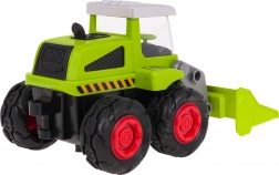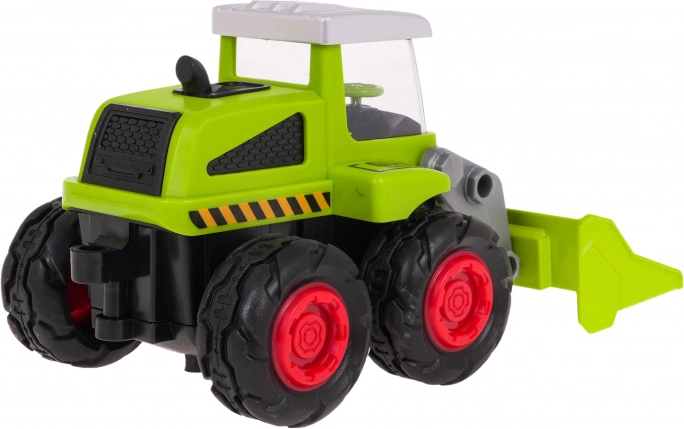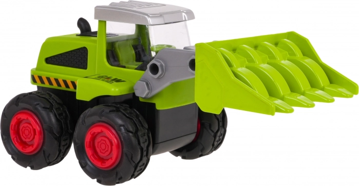 Zahvaljujoč gumijastim pnevmatikam z izrazitim profilom vozilo ohranja stabilnost na različnih podlagah. Zadnji pogon koles podpira gladko premikanje in še bolj realistično igro. Odlično darilo za male graditelje in ljubitelje kmetijske ter gradbene mehanizacije.