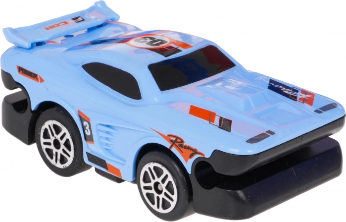 Ta barvit dirkalni set prinaša otrokom dinamično zabavo z strmimi vzponi, dvojno 360° zanko in varnostnimi ograjami v ovinkih. Zaradi fluorescentnih elementov proga v temi sveti in vožnja je še zabavnejša. Dva lahka dirkalna avtomobilčka z LED osvetlitvijo poganja vgrajen 3,7 V akumulator, polnita se prek USB.