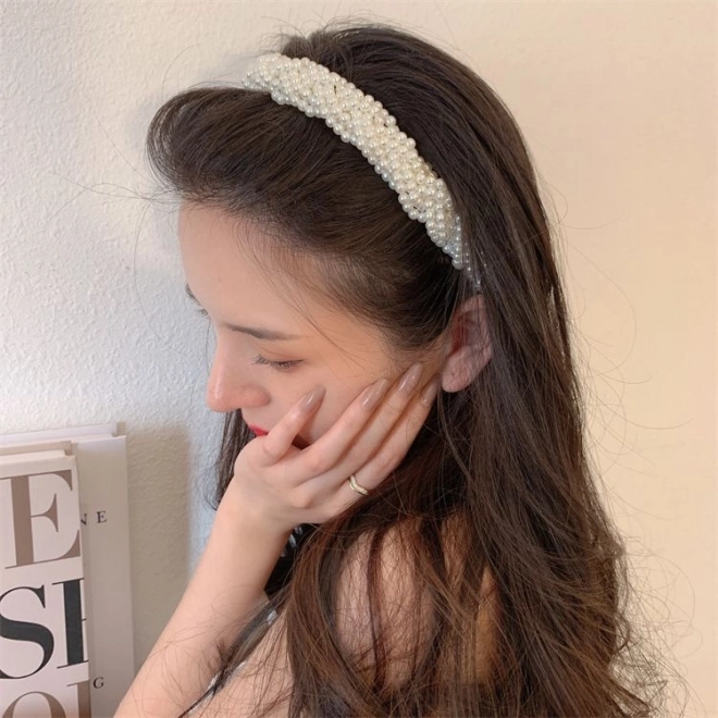 Naglavni trak s perlami, širok
