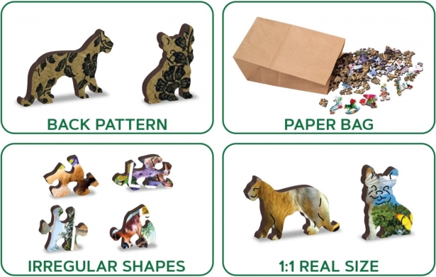 Sestavljanje sestavljanke z različno oblikovanimi kosi je zahtevnejše in predstavlja večji izziv kot sestavljanje klasične sestavljanke. Sestavljanka je poleg tega dvostranska – sestavljate lahko po sliki (licna stran) ali po obliki (hrbtna stran z vzorcem). Znamka WOODEN CITY poleg edinstvenega koncepta sestavljank ne pozablja na ekologijo, zato pri teh izdelkih ne boste našli nobene plastične embalaže. Z edinstveno oblikovanimi kosi, ki predstavljajo znane stavbe, predmete ali živali glede na izbrani motiv. Višja zahtevnost ob manjšem številu kosov – sestavljanje sestavljanke z različno oblikovanimi kosi je zahtevnejše.