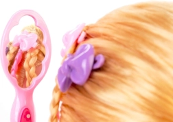 Z barvitimi sponkami in ogledalom omogoča eksperimentiranje z različnimi pričeskami, ki spodbujajo kreativno igro.