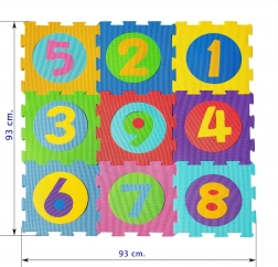 Vsak del podloge vsebuje številko, ki lahko pomaga otrokom pri učenju osnovnih matematičnih veščin.