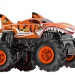 Sedi za volan tega daljinsko vodenega vozila Tiger Shark in se s vratolomno hitrostjo zapodi v akcijo v slogu Monster Trucks! Ta zver iz sveta Monster Trucks bo zlahka premagala vsako oviro zahvaljujoč pnevmatikam Terrain Action in pogonu na vsa kolesa. Napadi v slogu morskega psa in zdrobi vsako oviro, ki ti pride na pot. Ljubitelji Monster Trucks bodo z veseljem pripravili epski spopad tega vozila z voziloma Hot Wheels RC Monster Trucks Race Ace in HW 5-Alarm – prav tako kot v igri Monster Trucks Live. Prodaja se ločeno, odvisno od razpoložljivosti. Barve in okrasni elementi se lahko razlikujejo.