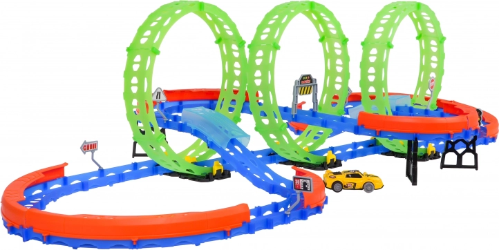 Svetleča dirkalna proga za otroke 3+ s 3 zankami 360° in LED avtomobilčkom, 74 delov