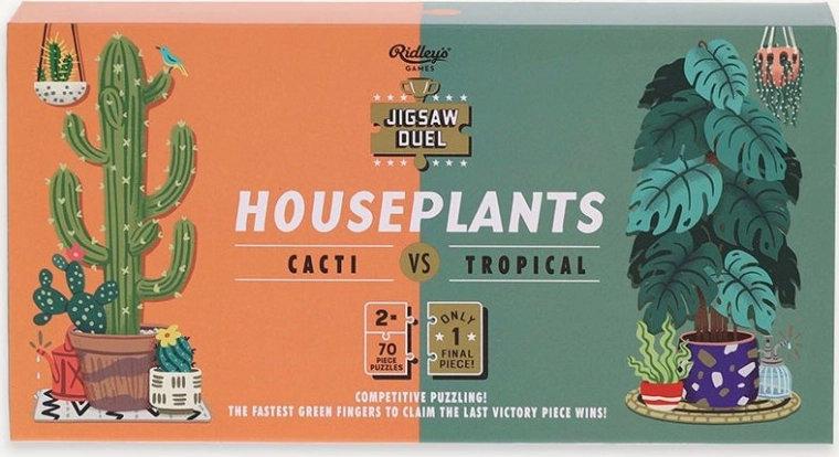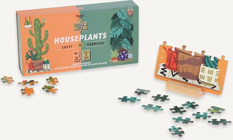 Uživajte v napetem dvoboju v sestavljanki iz serije Puzzle Duel – sobne rastline. Izberite med motivi kaktusov in tropskih rastlin, tekmujte za zadnji obojestranski košček in uživajte v zabavi brez plastične embalaže. Priložen je lesen stojalo za zadnji košček in dve barvni predlogi za lažje sestavljanje.