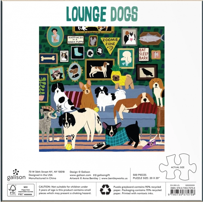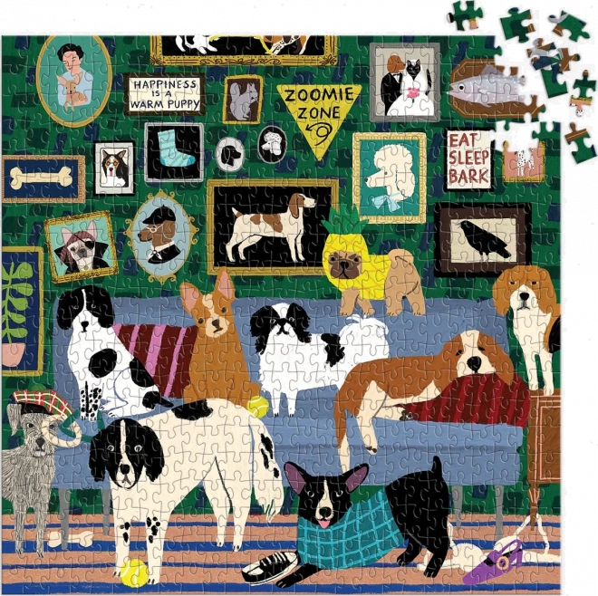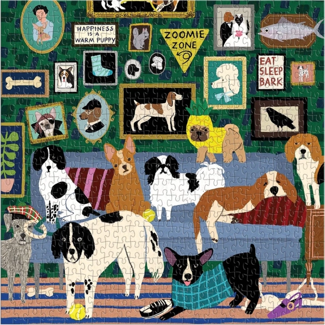 Uživajte v sprostitvi z elegantnimi sestavljankami z motivom psov v prijetnem salonu. Ta kvadratni set ponuja 500 koščkov, kakovosten tisk in predlogo motiva za lažje sestavljanje. Po sestavi nastane slika dimenzij približno 51 × 51 cm – idealna za uokvirjanje.
