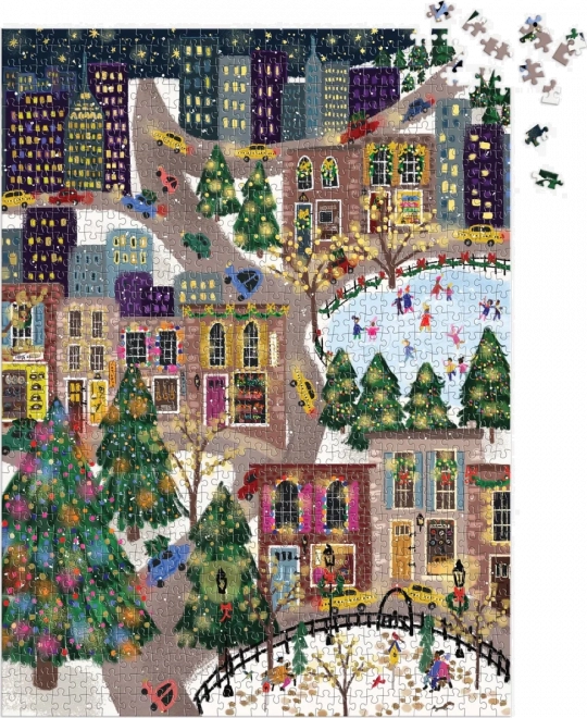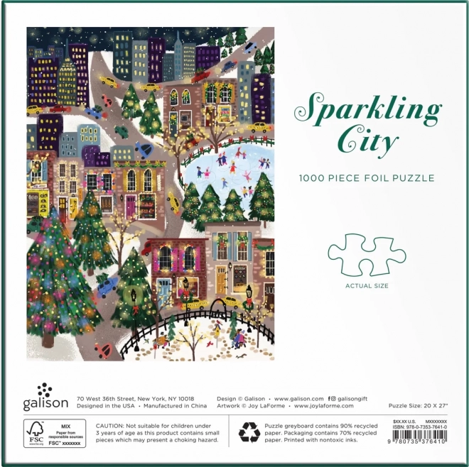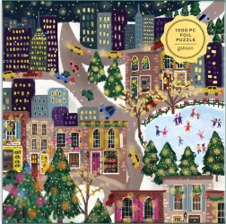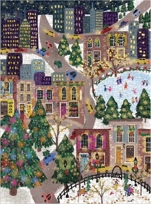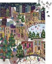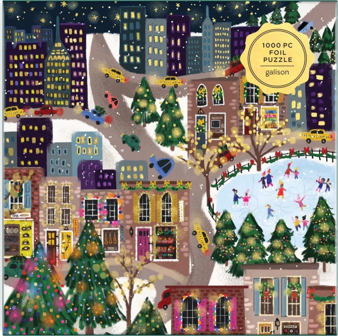 Odkrijte praznično mestno sceno, polno barv, lučk in drsalcev. Sestavljanka z kovinskimi folijami na izbranih delih motiva ustvari edinstven bleščeč učinek, ki izstopa pri različnih vpadnih kotih svetlobe. Odlična kot darilo za ljubitelje sestavljank in kot zimska dekoracija doma.