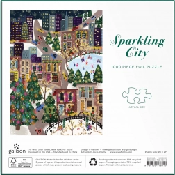 Uživajte v čarobnem zimskem vzdušju z 1000-delno sestavljanko Sparkling City, katere deli imajo kovinski sijaj za učinek zlata in srebra. Zahvaljujoč kakovostni izdelavi in natančno izrezanim koščkom je sestavljanje gladko in zabavno, priložena predloga pa olajša orientacijo. Po sestavljanju dobite dekorativno sliko velikosti pribl. 51 × 69 cm.