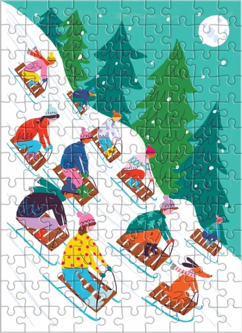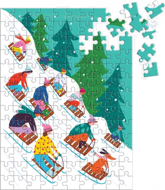 Vsak kos puzzle je skrbno zasnovan, da prikazuje živahno zimsko sceno z otroki, ki se sankajo po zasneženih pobočjih. Odlično za otroke in odrasle!
