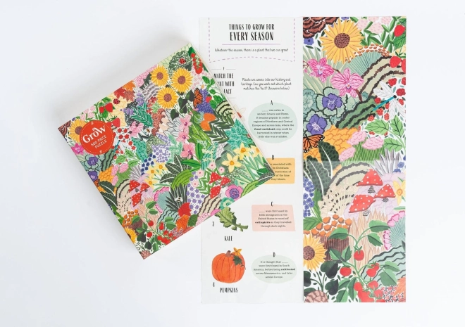 Potopite se v svet barv s sestavljanko Rast. Ta komplet prinaša čudovito ilustrirane koščke, ki skupaj ustvarijo spomladansko scenografijo, bogato s cvetjem in zelenjem. Vsebina: