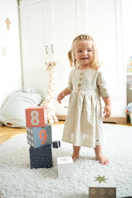 Predstavljamo edinstvene zložljive kocke Arctic, ki združujejo učenje in igro. Z desetimi kockami iz vzdržljivega kartona s certifikatom FSC ponujajo otrokom zabavno priložnost, da osvojijo osnove števil, barv in velikosti. Vsaka kocka je okrašena z motivom polarnih živali in številko, kar podpira ne le ustvarjalnost, temveč tudi fino motoriko malih graditeljev.