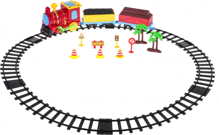 Komplet vključuje 2 vagona (z ogljem in z drevesom), krožne tirnice s premerom približno 72,5 cm ter dodatke v obliki prometnih znakov, stožcev in drevesc. Enostavna sestava in robustna izdelava zagotavljata dolge ure zabave ter razvoj domišljije.