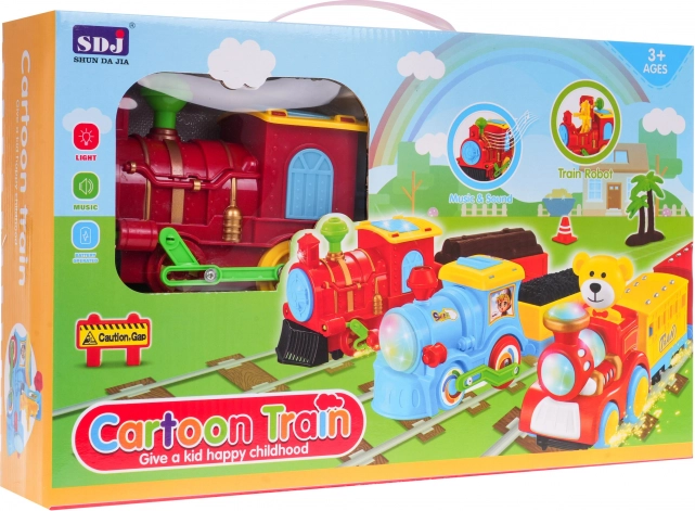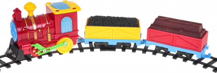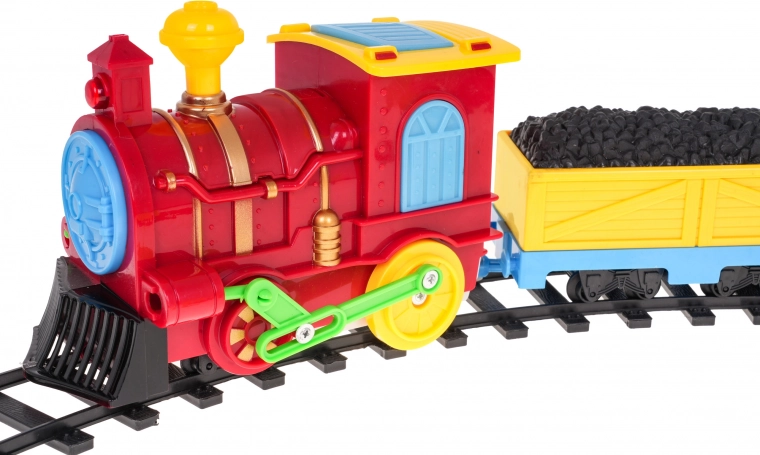 Ta barvita plastična vlakovna garnitura bo razveselila vsakega malega strojevodjo. Lokomotiva je opremljena z utripajočimi lučmi spredaj, na vrhu in ob straneh kabine ter med vožnjo oddaja realistične zvoke. Zanimiv element je odpirajoča se kabina, iz katere se med vožnjo izvleče figurica robota.