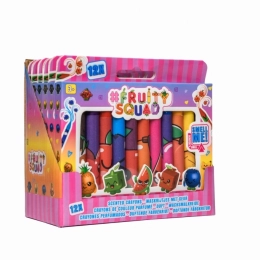 Odkrijte svet barv in vonjev z dišečimi voščenkami Fruity Squad, ki otrokom ponujajo nepozabno čutno izkušnjo. Vsak komplet dvanajstih voščenk se ponaša z edinstvenim sadnim vonjem, ki ustreza njihovi barvi, kar navdihuje male umetnike pri ustvarjanju. Mehke in ergonomske oblike voščenk zagotavljajo enostaven oprijem za majhne ročice.