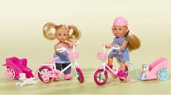 - Punčka Evi, tricikel z odstranljivo prikolico, kužek, čelada