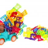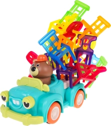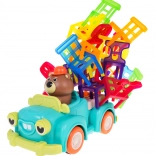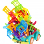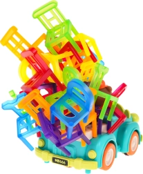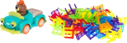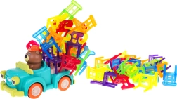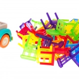 Igra spretnosti Zložljiv stol in avto je idealna za otroke od 3. leta dalje. Sestavljena je iz 48 barvitih stolčkov različnih oblik in avta, ki se vozi po krogu. Vaša naloga je zgraditi stolp iz stolov na premikajočem se avtu. Ta naloga izboljšuje koordinacijo med roko in očesom ter povečuje natančnost. Avto lahko spreminja premer vrtenja med 40 cm in 120 cm s pomočjo kolesa na spodnjem delu vozila.