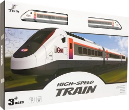 Lastnosti vlaka: Premikanje naprej, rdeča dioda na sprednji strani lokomotive, realistični zvoki. Tire in vlak so narejeni iz kakovostne plastike, ki zagotavlja dolgo življenjsko dobo in odpornost.