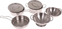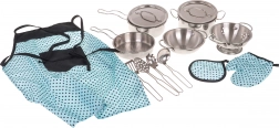 Ta odlično oblikovan otroški kuhinjski komplet je idealen za male kuharje in kuharice. Trpežen kovinski material zagotavlja dolgo življenjsko dobo in realističen izgled, ki ga otroci obožujejo. Set poleg posode vključuje tudi praktične kuhinjske dodatke, ki so potrebni za vsako otroško kuhinjo.