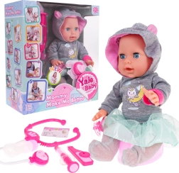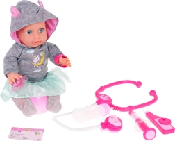 Ta igrača spodbuja razvoj odgovornosti in skrbnosti. Del kompleta sta magnetna duda in zdravniški pripomočki, ki vašemu otroku omogočajo igro zdravnika. Baterije niso priložene (3 x AA 1,5 V za punčko in 2 x AG13 za stetoskop).