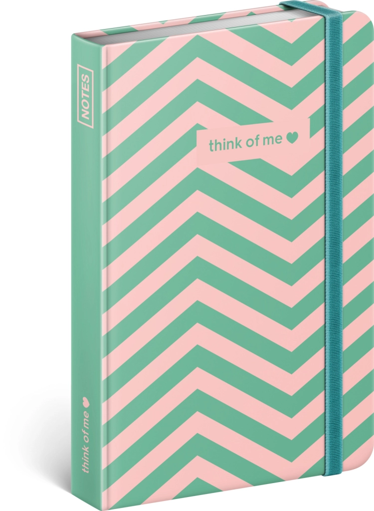 Stilski zvezek z motivom Think of Me in trdo knjižno vezavo, dopolnjen s praktičnim elastičnim trakom za zapiranje.