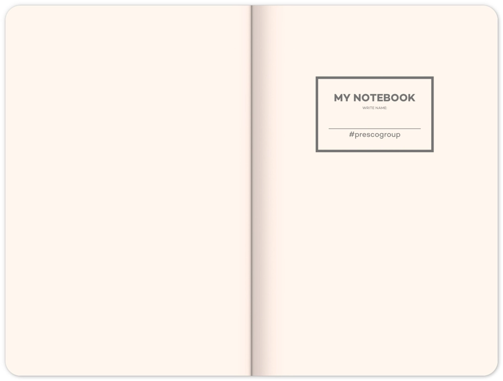 Eleganten zvezek z motivom Think of Me podjetja Presco Group je idealen za vsakodnevne zapiske, načrtovanje ali ustvarjalno pisanje. Kompaktne mere in trda vezava zagotavljajo dolgo življenjsko dobo.