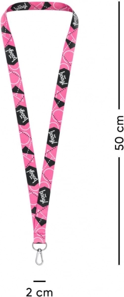 Na črnih delih traku izstopa izrazit potisk z logotipom BAAGL in motivi srčkov, ki dodajo edinstven videz. Lanyard je idealen za ključe, ID-kartice, USB-ključke ali manjše dodatke in se zaradi dolžine 45 cm udobno nosi okoli vratu ali pripne na torbo.