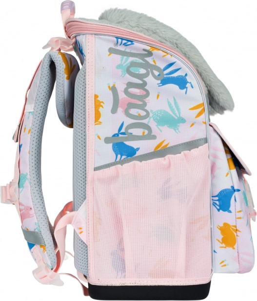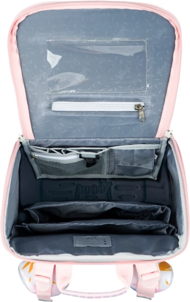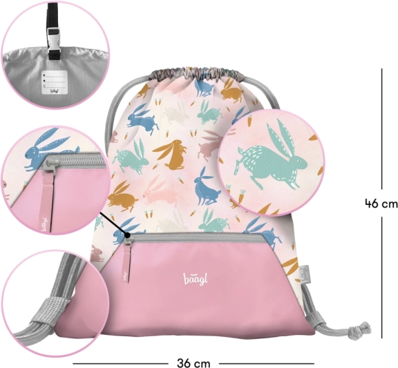 Set BAAGL Zippy Bunny združuje igriv dizajn s poudarkom na zdravem nošenju in urejenosti. Aktovka s pomičnim sistemom ERGO ADJUSTABLE SYSTEM se prilagodi rasti otroka, ima učvrščen, ergonomsko oblikovan hrbtni del, popolnoma nastavljive trakove in stabilno lahko konstrukcijo. Nov preklopni sistem odpiranja olajša dostop do učbenikov kar iz klopi.