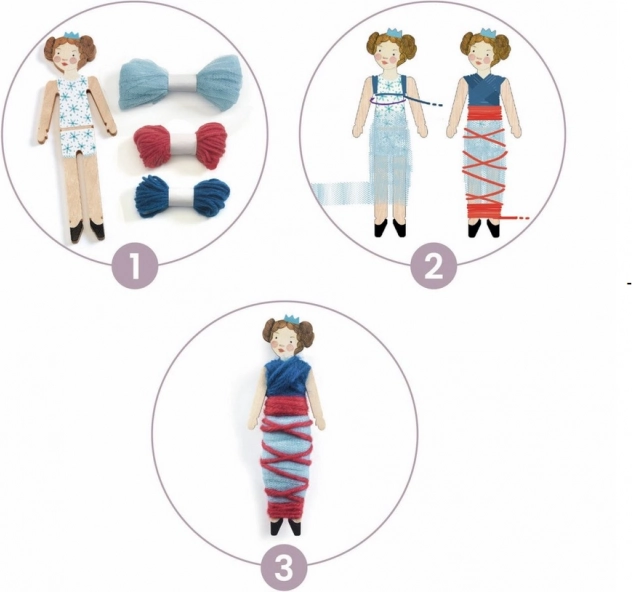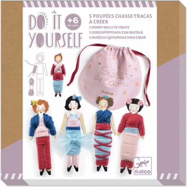 Čudovit set za deklice, ki imajo rade lutke. Set, s katerim si bodo deklice izdelale 5 lepih lutk in jih lahko nosile s seboj v platneni vrečki. Velikost lutke: približno 10 x 3,5 cm. Primerno za otroke od 6 let.