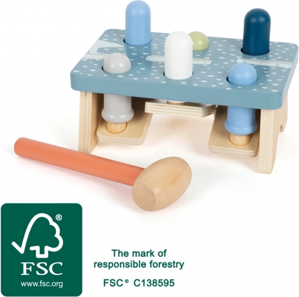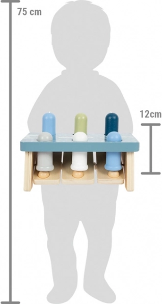 Zabijanje krepi prijem, natančnost gibov in koordinacijo oko-roka. Idealna dejavnost za zgodnji razvoj veščin pri otrocih od 12 mesecev.