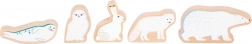 Figurice polarnega medveda, snežne sove, polarne lisice, tjulnja in zajca navdihujejo pripovedovanje zgodb ter spodbujajo domišljijo pri igri.