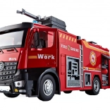 Kovinski gasilski avtomobil z zvočnimi in svetlobnimi učinki, z odpirajočimi se vrati, avtomobil je na vztrajnik.
