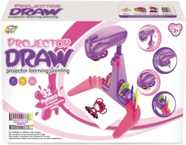 Zabaven dekliški projektor za risanje otrokom olajša ustvarjanje slik po predlogah. Vsebuje 32 šablon in vzorcev, 12 barvnih flomastrov za barvanje ter nastavljivo višino za udobno uporabo. Praktični držala za flomastre in barvice poskrbijo, da je vse pri roki – idealno darilo za male umetnike.