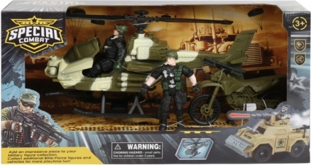 Ta posebni bojni komplet otrokom ponuja neskončne možnosti za imaginativno igro. Lahko izbirate med helikopterjem ali terenskim vozilom, vsak komplet vsebuje akcijsko figurico in druge igralne dodatke za realistično vojaško igro.