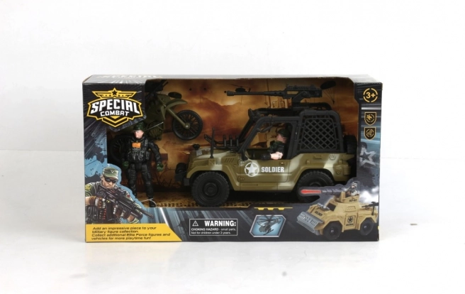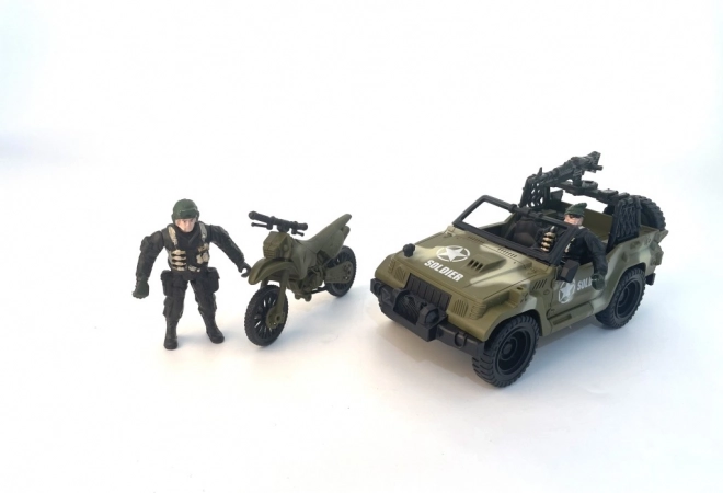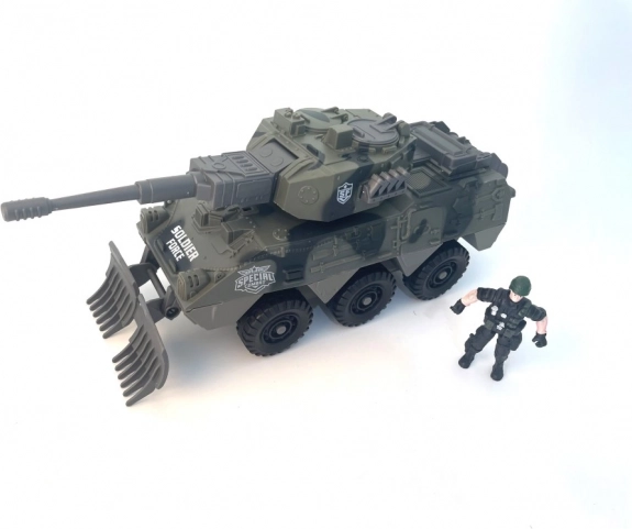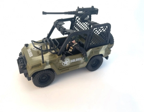 Ta zabavni vojaški komplet je idealen za vse male navdušence nad vojaško tehniko. Vsebuje robustno terensko vozilo, ki je popolnoma prilagojeno za igro vojščakov. Poleg avtomobila komplet vsebuje vojaško figurico in različne dodatke, ki bodo otrokom pomagali ustvariti svojo lastno vojaško zgodbo. Vojaški avto je opremljen z detajli, ki mu dajejo realističen videz in zagotavljajo visoko zabavnost pri igranju.