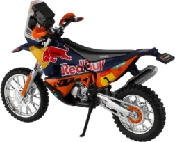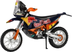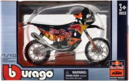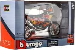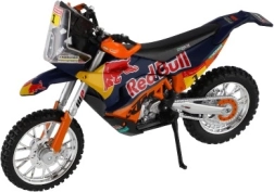 Model dirkalnega motorja BBURAGO v merilu 1:18 zvesto prikazuje zasnovo RED BULL KTM z Rally Dakar 2019 – vključno z izrazitim oranžno-modrim lakiranjem, logotipi in dirkaškimi elementi. Zahvaljujoč kombinaciji kovinskih in plastičnih delov deluje robustno, hkrati pa ohranja natančno izdelavo.
